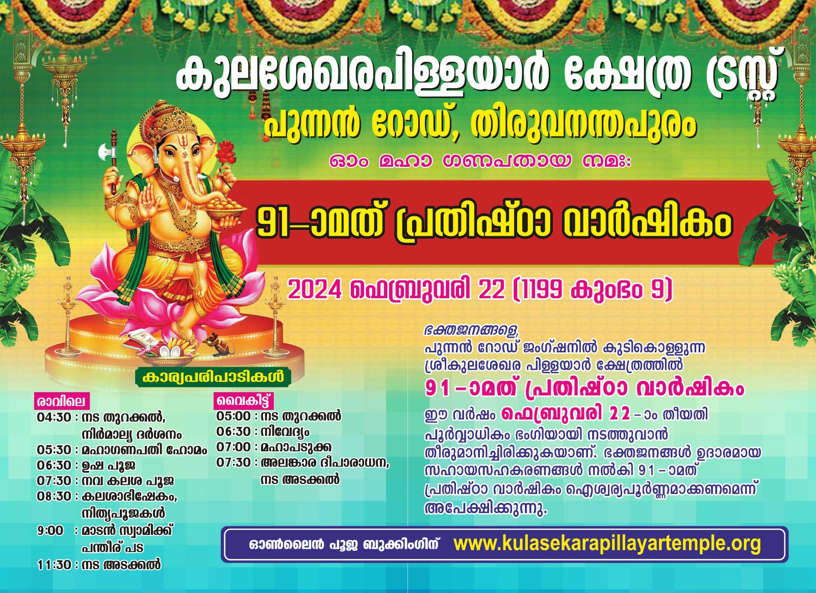 Kulasekara Pillayar - Pooja Bookings