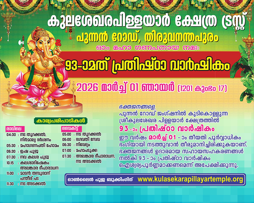 Kulasekara Pillayar - Pooja Bookings